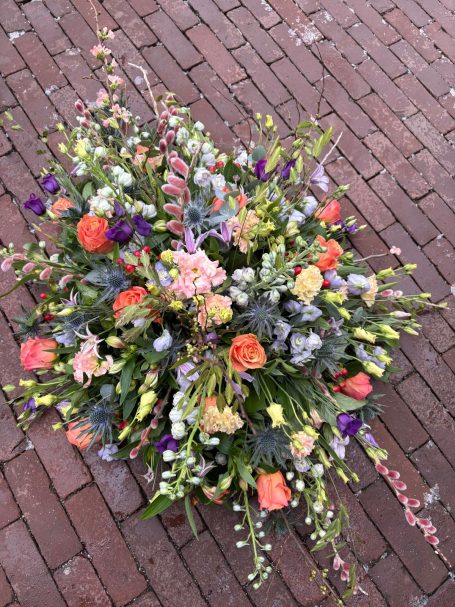 Elk bloemstuk wordt met gevoel samengesteld en kan, indien gewenst, worden verrijkt met persoonlijke voorwerpen die herinneringen tastbaar maken.
